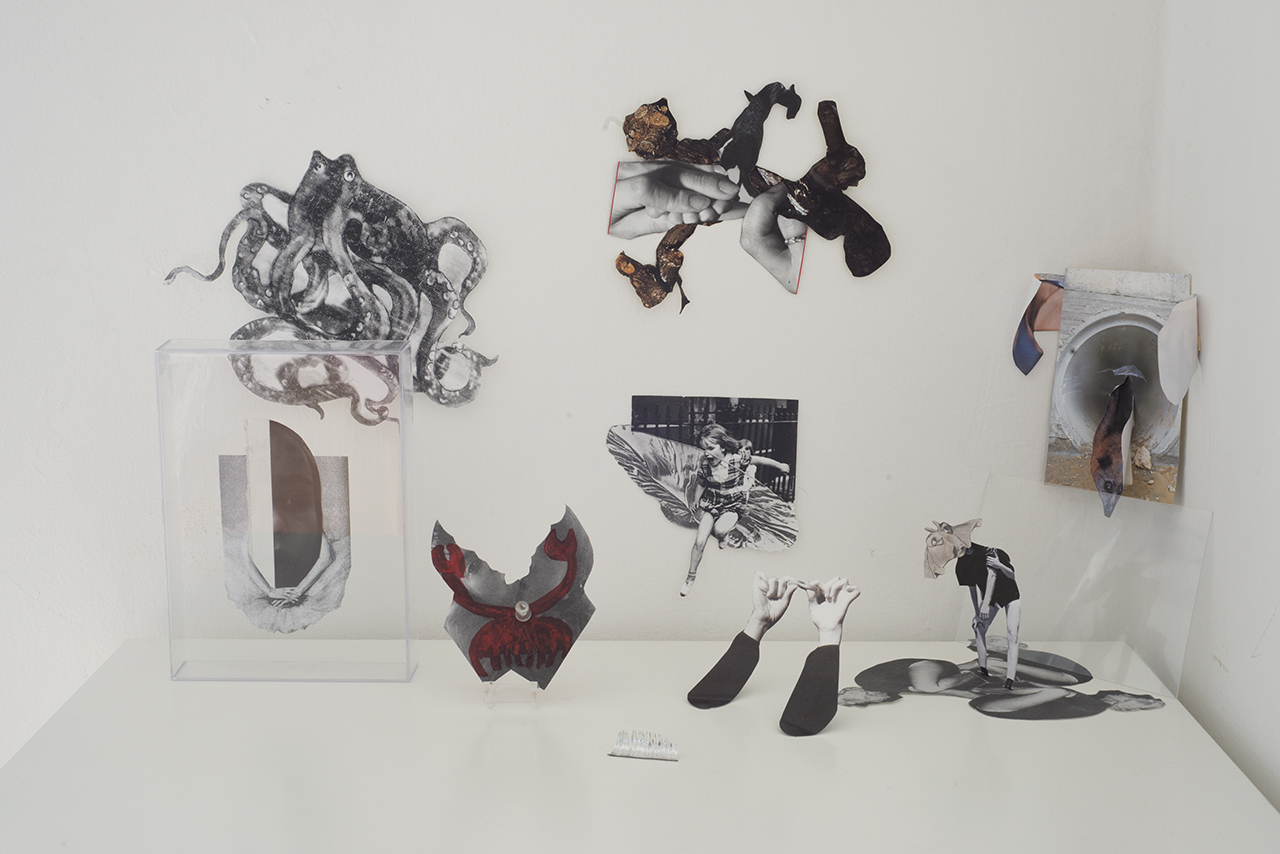 Untitled (Collage and Cat), 2012, Collage 94×60 cm Cat 20×12 cm