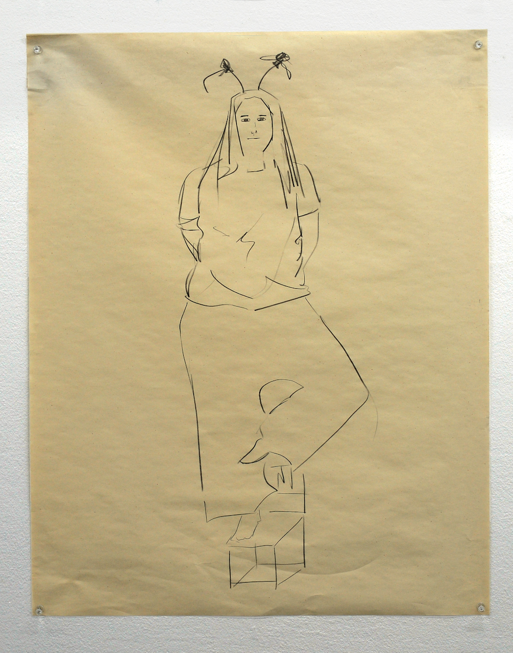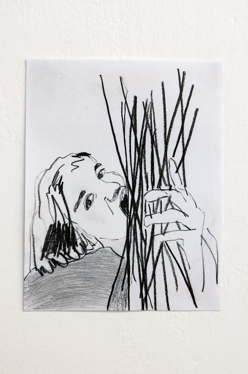 Self Portrait on a Chair with Antennae, 2010, Pencil on paper, 50×70 cm